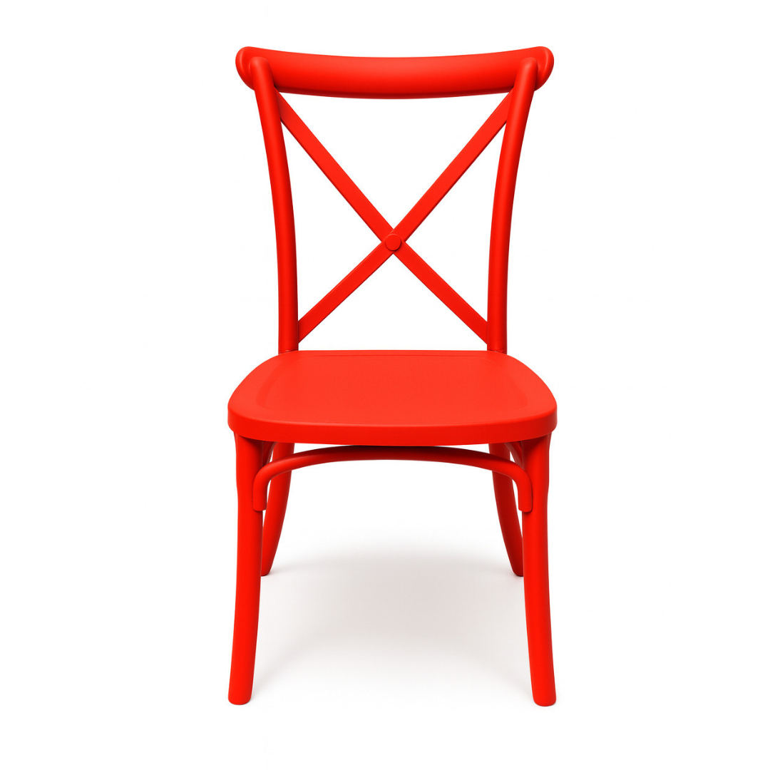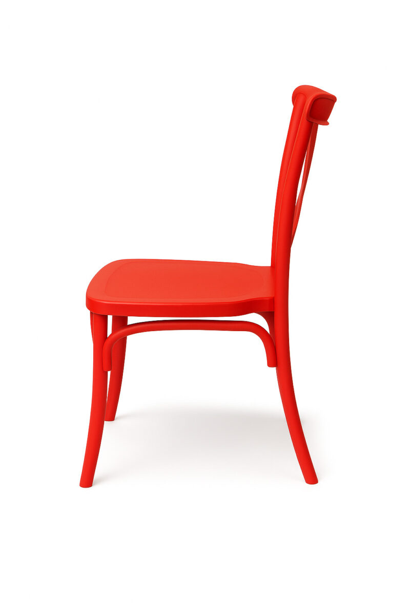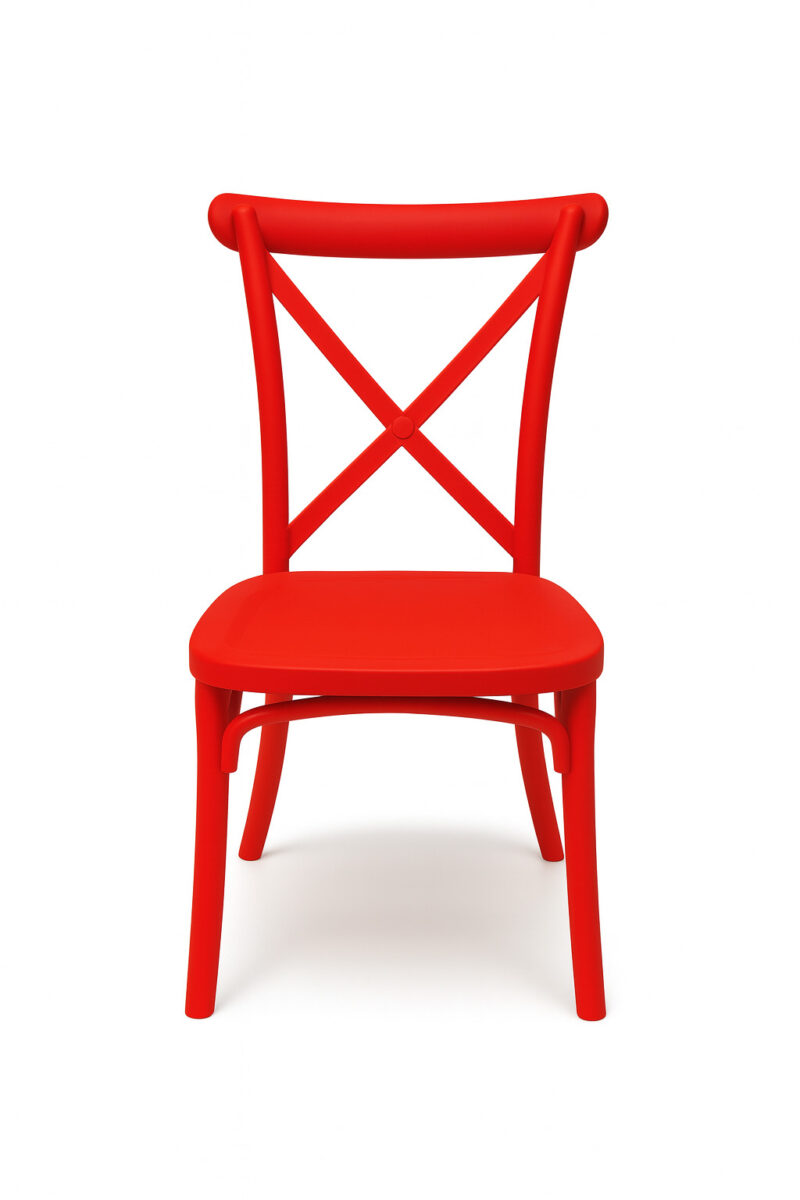 Culoarea roșie intensă conferă scaunului energie și caracter, făcându-l nu doar o piesă practică de mobilier, ci și o decorațiune interioară. Este perfect pentru camera copilului, grădiniță sau cameră de joacă, precum și pentru sărbătorile de familie – zile de naștere, botezuri, comuniuni sau nunți. Spătarul încrucișat în stil Boho accentuează eleganța și contribuie la aspectul său unic.
